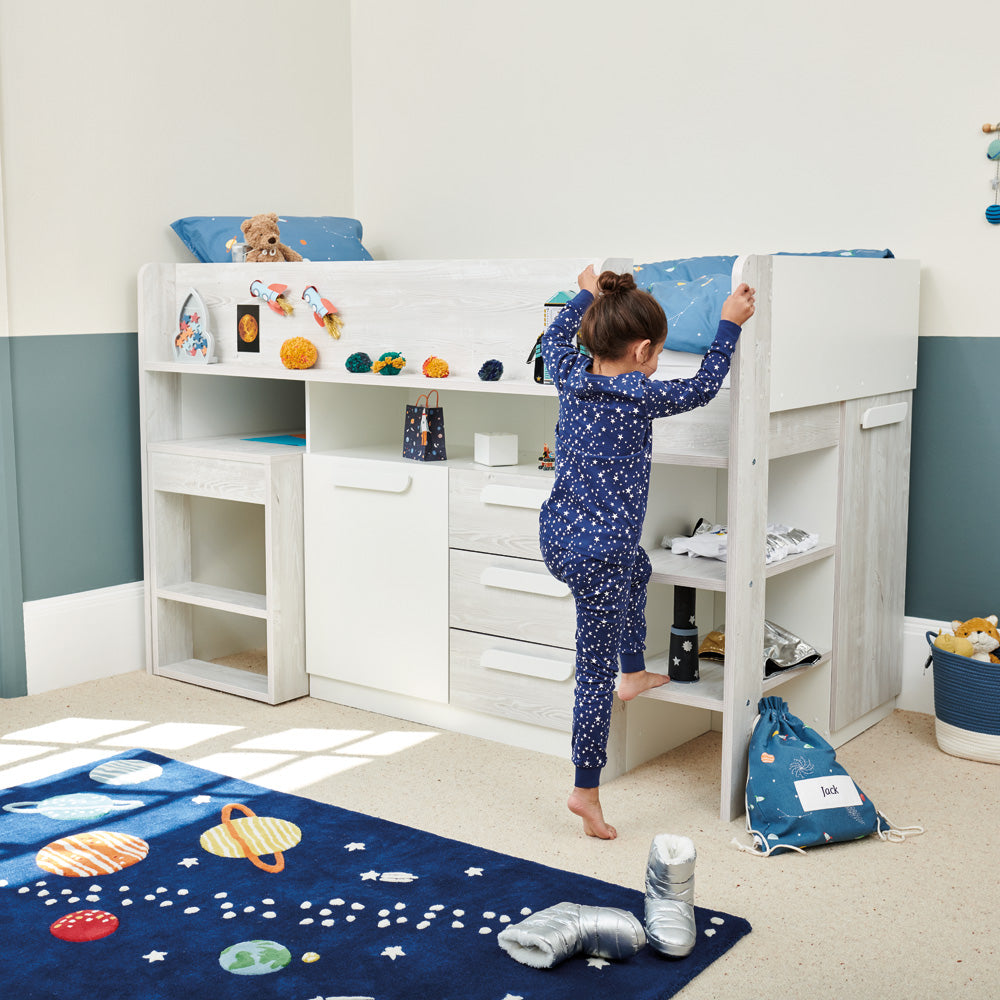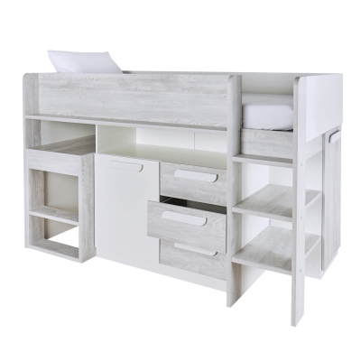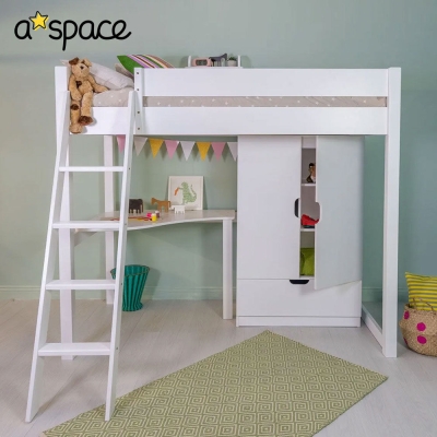 Warwick High Sleeper Bed with Wardrobe and Desk, Silk White
